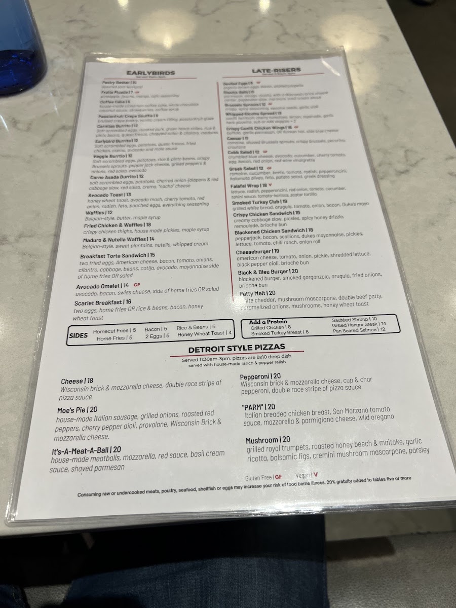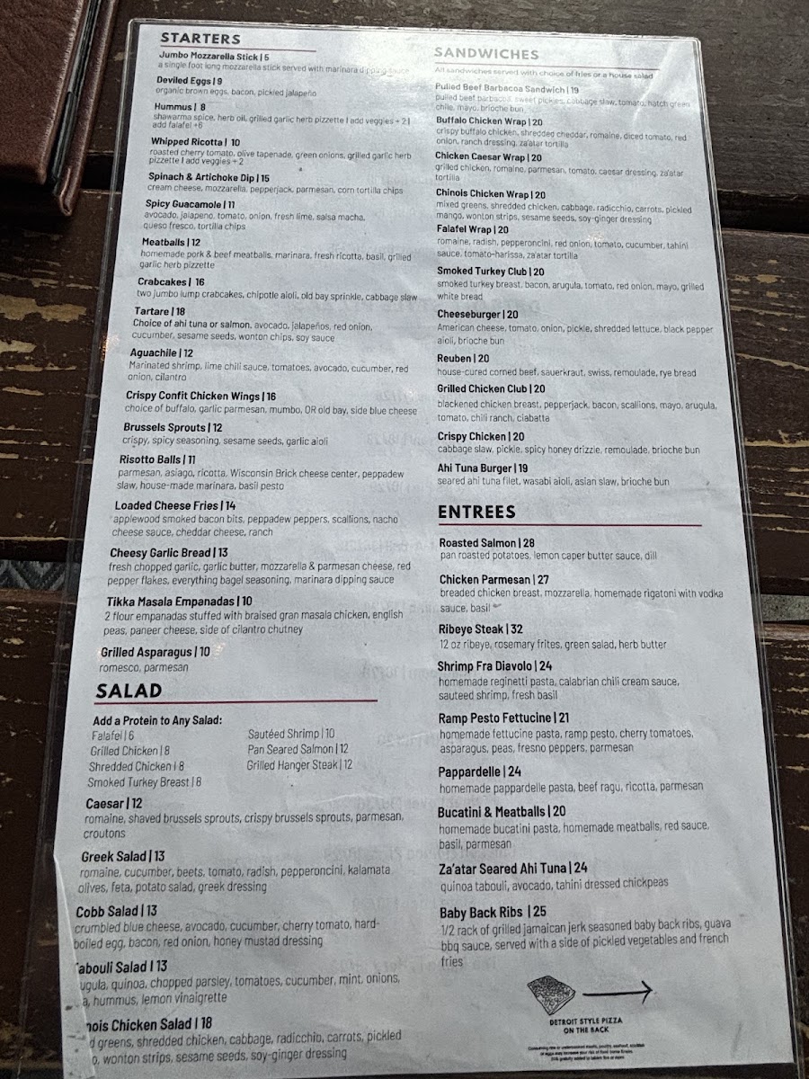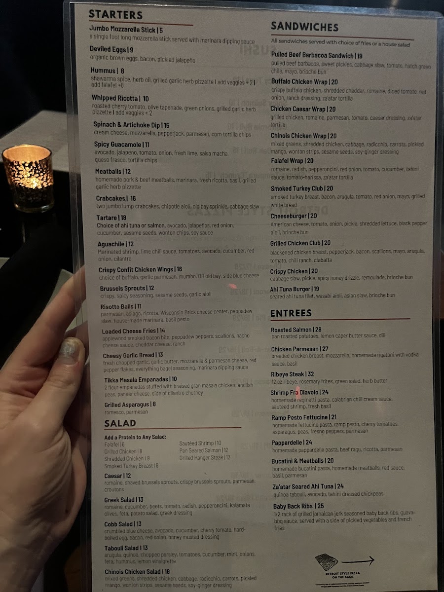 homemade meatballs, mozzarella, red sauce, basil cream sauce, shaved parmesan